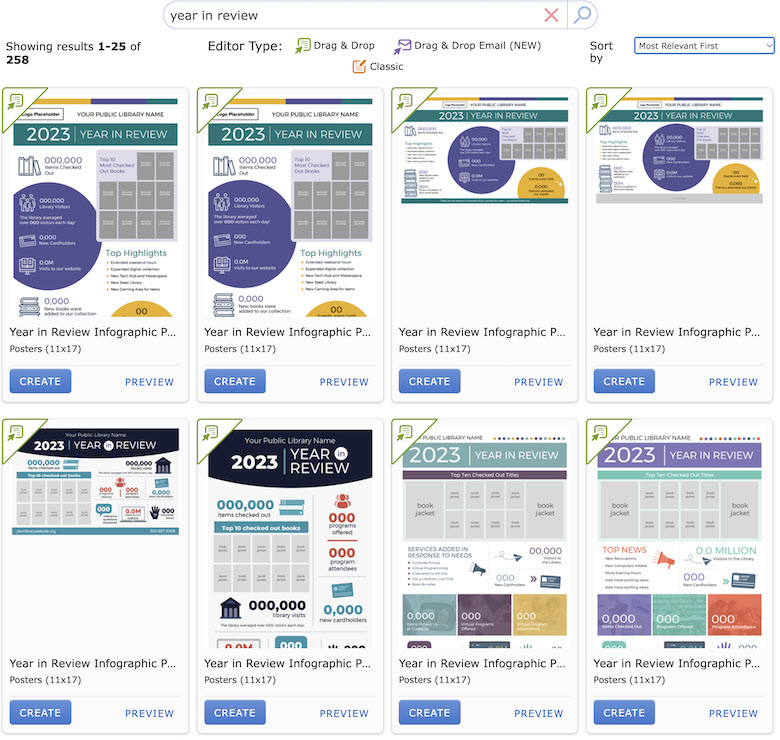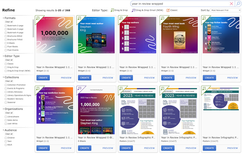 Want to make a "2023 in Review" for your library? LibraryAware subscribers can search year in review and create their own using these templates: