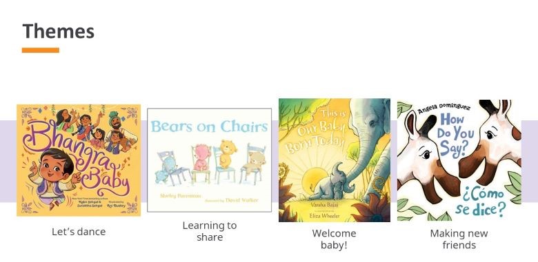 For children, themes often relate to a specific life experience such as becoming an older sibling, moving to a new neighborhood, or starting school. Caregivers may ask for books to help welcome new babies, say goodbye to loved ones, or talk about emotions. In that case, you may find a theme, like the ones below, that helps find what they are looking for.