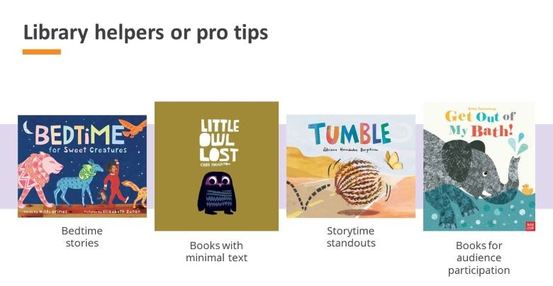 But there are general kinds of books that toddlers are interested in or that caregivers may look for. At NoveList, we consider these more library helpers or pro-tips than genres, and they are helpful ways to group books. Things like Stories in rhyme, Bedtime stories, Noisy stories, Books for quiet time, Books for audience participation, and Storytime standouts all fall into this group.