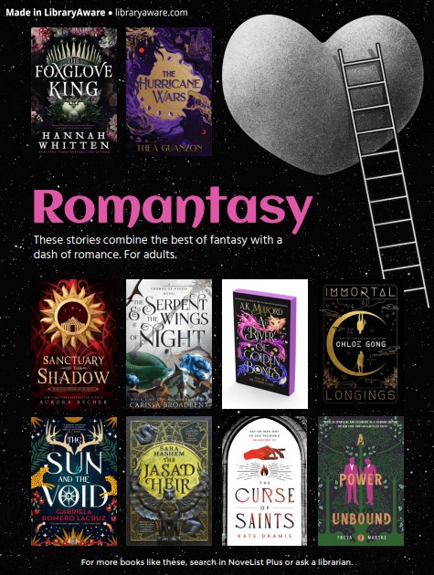 Here's a freebie to help you recommend Romantasy books! Download this LibraryAware flyer and use it wherever you interact with readers.
