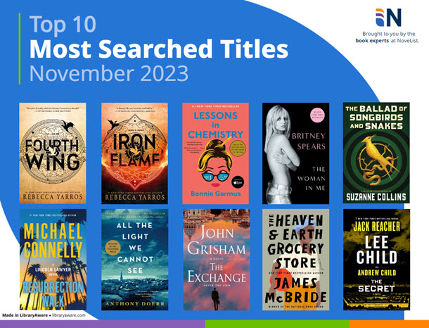 Here are November's top ten titles (another month of list shake-ups!) searched in library catalogs that include NoveList Select: