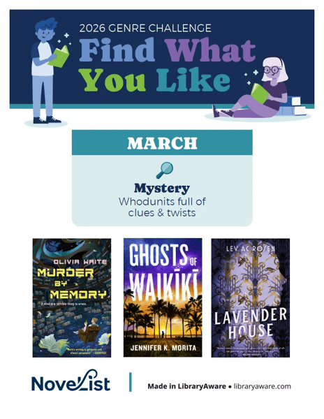 You have a lot on your plate each month, so feel free to print this blog out and keep it at the desk for those moments when you need a quick recommendation. This blog features just 10 titles on the list, so you could also head over to NoveList Plus to see and print the whole thing. Search “Best of March 2026” and you’ll find it (and you can explore the rest of the amazing Curated Lists while you’re there!). Not sure if your library has NoveList Plus? Find out here. If you don’t, click here to request information.