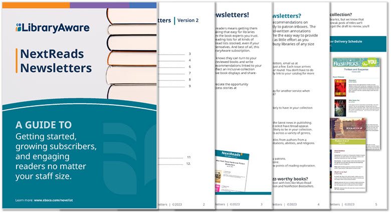 NextReads newsletters are a fun and engaging readers’ advisory and collection promotion tool included in every LibraryAware subscription. The curated lists include award-winning, handwritten annotations from the book experts at NoveList linked directly to your catalog. Now it’s even easier to get your collection and recommendations in front of more people with A Guide to NextReads Newsletters. Download the guide for information on getting started, growing your subscribers, and engaging readers no matter the size of your library.