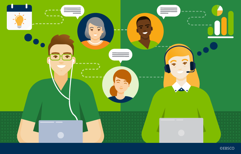 Onze Account Executives, of kortweg AE’s, voor de Benelux zijn Natalie Avnery (medische markt), Malvina Jourdain (academische en overheidsmarkt), Tina Foote (zakelijke markt) en Ben Hebing (academische markt). Zij helpen onze klanten dagelijks met antwoorden op hun vragen, informatie, demonstraties en meer. Behalve Tina die vanuit haar thuiskantoor in Engeland werkt, hebben zij allemaal het EBSCO-kantoor in Augsburg, Duitsland, als thuisbasis.
