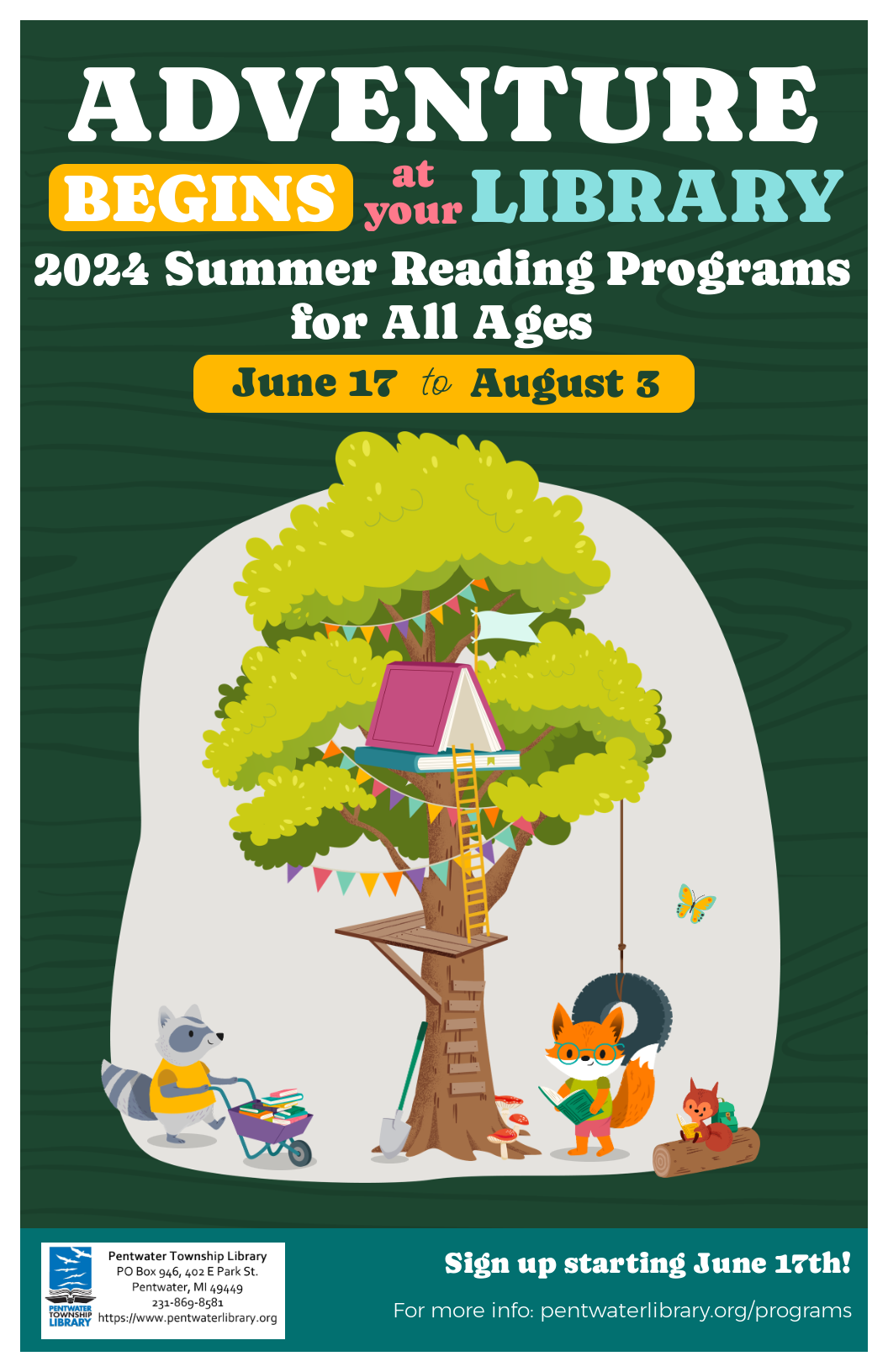 Mary and her team used LibraryAware’s suite of Summer Reading templates this year, creating matching posters, reading logs, social media posts, and more. The collection of templates ensured that Pentwater Township Library maintained the same look and feel across promotional platforms.
